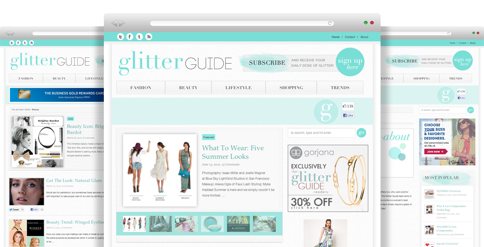 The Glitter Guide offers a fun, chic, and colorful tidbits from fashion to fitness; each injected with a healthy dose of glitter. We brought the clients’ ideas to life through a stylish, chic and fashion-focused site design and delivered it all on the wondrous WordPress platform.