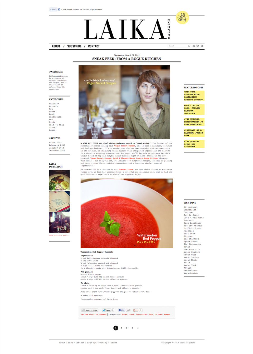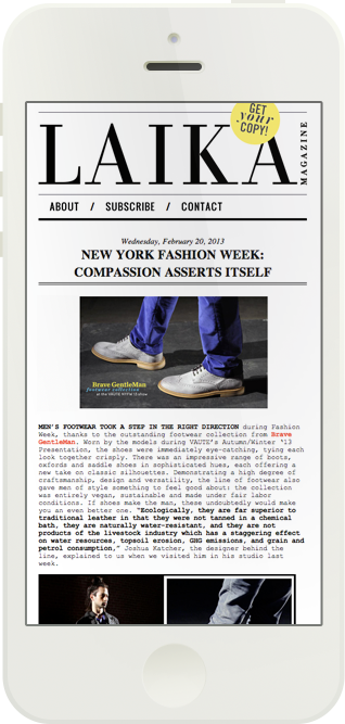 Laika Magazine is a quarterly vegan lifestyle magazine. We custom created and built a responsive WordPress theme, with the option to pay for print or digital subscritions to the magazine.